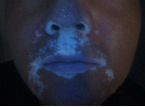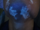 治疗3个月后伍德灯下面部白斑情况